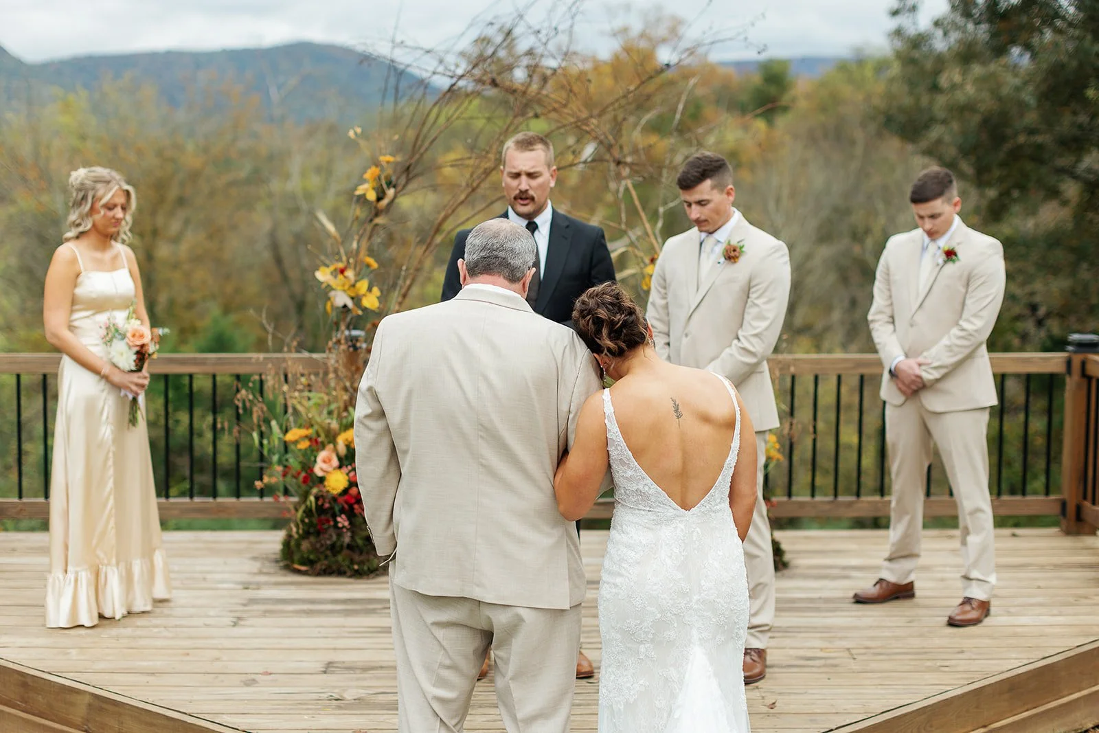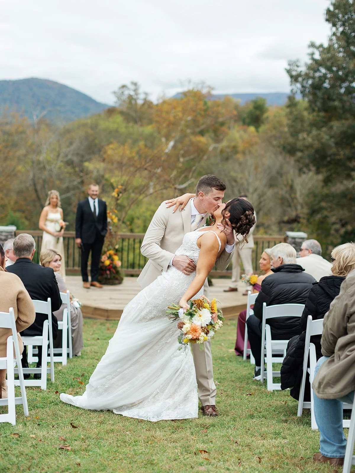 There is just something about late October in East Tennessee. The air turns crisp, the mountains glow in warm shades of amber and gold, and love somehow feels even more magical. This beautiful fall wedding at Whispering Winds captured everything we adore about autumn celebrations, meaningful details, heartfelt moments, and scenery that simply cannot be replicated.